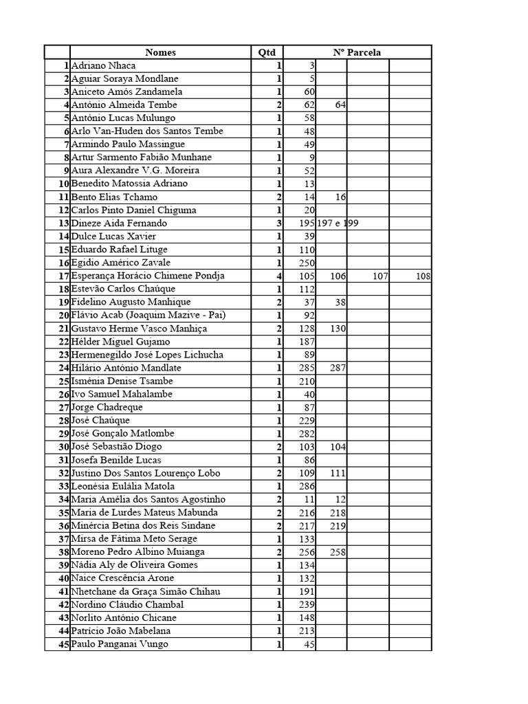 Nomes Qtd Nº Parcela