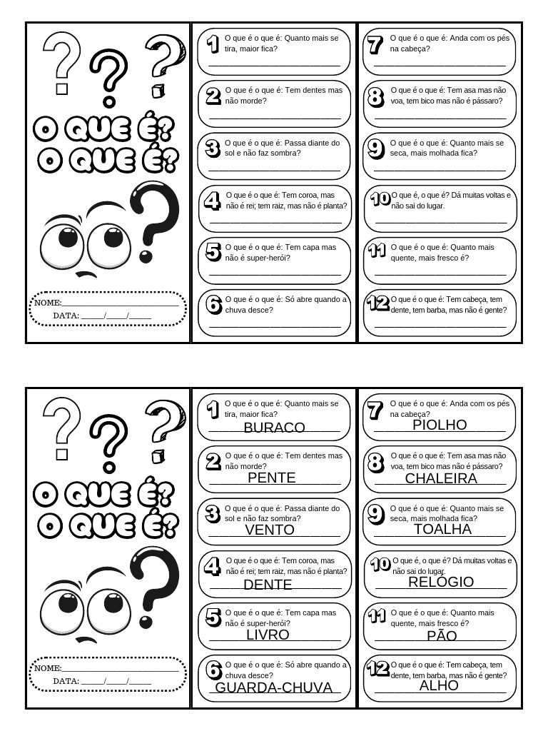 NOME:__________________________________________ O que é o que é: Só abre quando a O que é o que é: Tem cabeça, tem