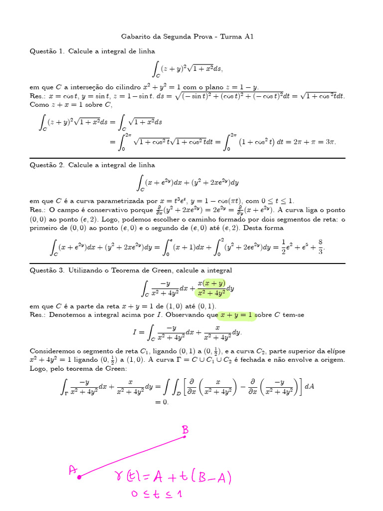 Gabarito da Segunda Prova - Turma A1