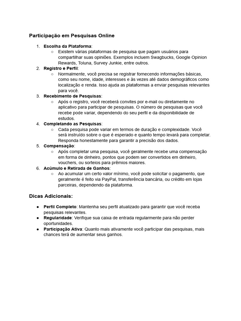 compartilhar suas opiniões. Exemplos incluem Swagbucks, Google Opinion