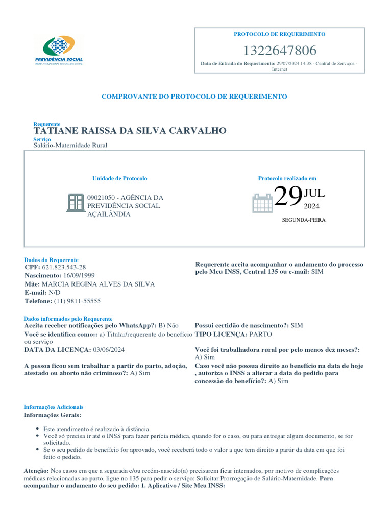 médicas relacionadas ao parto, ligue no 135 para pedir o serviço: Solicitar Prorrogação de Salário-Maternidade. Para