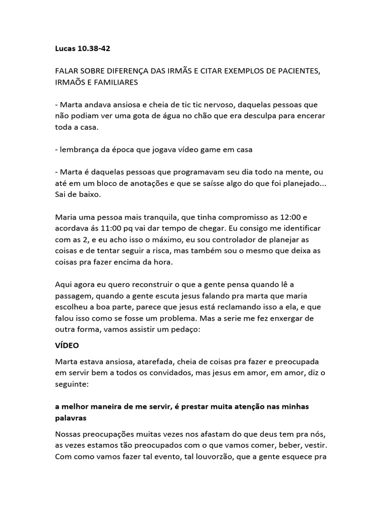 passagem, quando a gente escuta jesus falando pra marta que maria