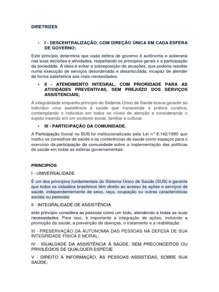 É um dos princípios fundamentais do Sistema Único de Saúde (SUS) e garante