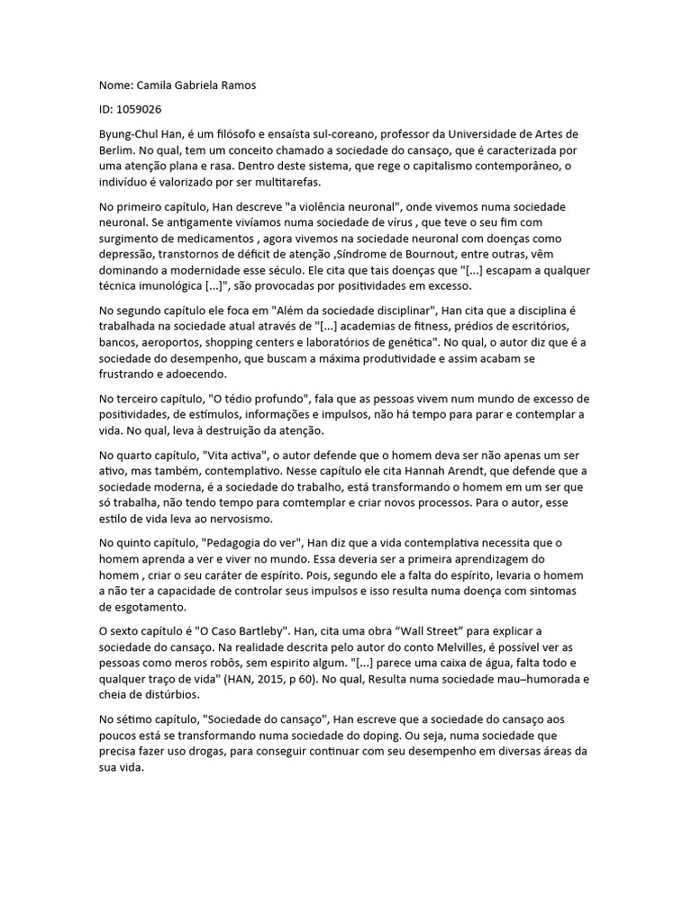 Berlim. No qual, tem um conceito chamado a sociedade do cansaço, que é caracterizada por
