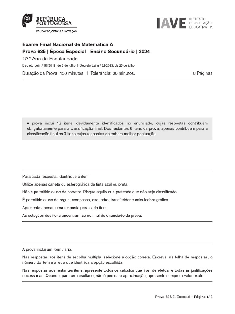 Prova 635 | Época Especial | Ensino Secundário | 2024