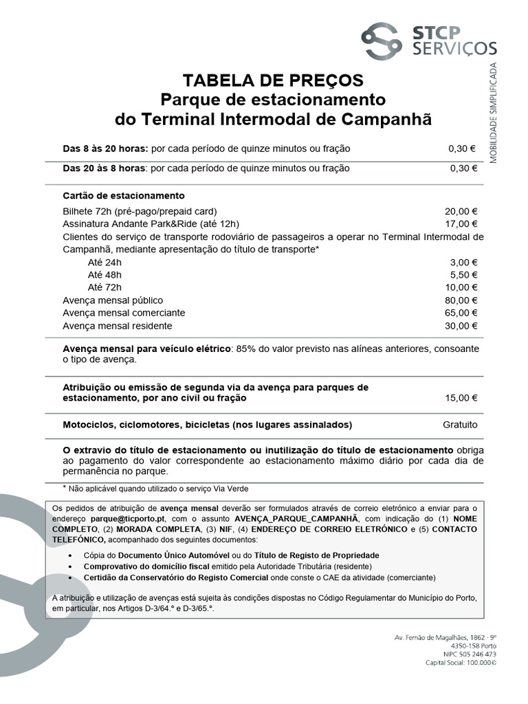 endereço parque@ticporto.pt, com o assunto AVENÇA_PARQUE_CAMPANHÃ, com indicação do (1) NOME