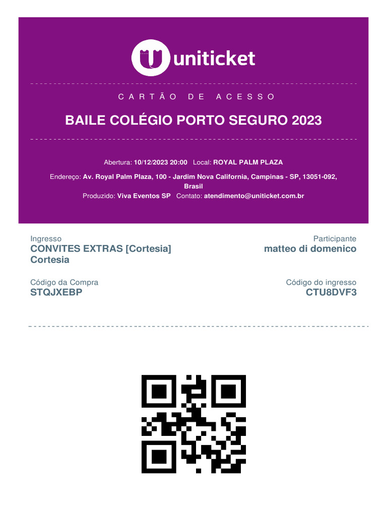 Você está recebendo apenas um ingresso da compra CTU8DVF3. Este