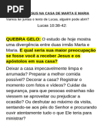 • Leitura Bíblica: Lucas 10: 38-42