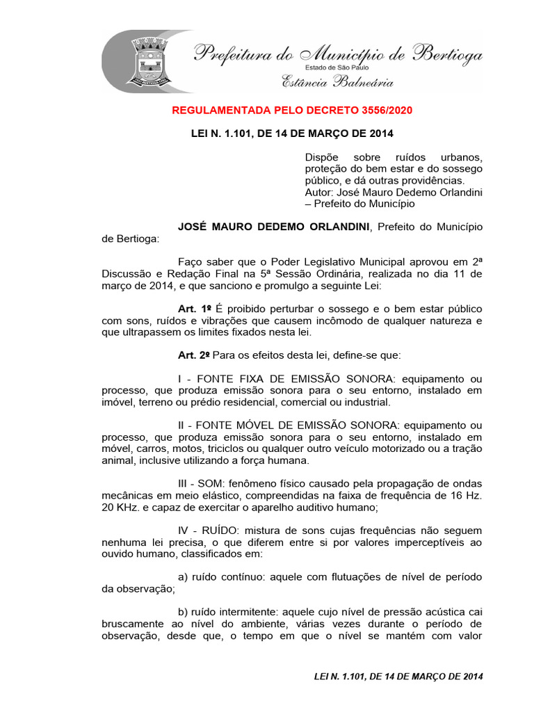 LEI N. 1.101, DE 14 DE MARÇO DE 2014