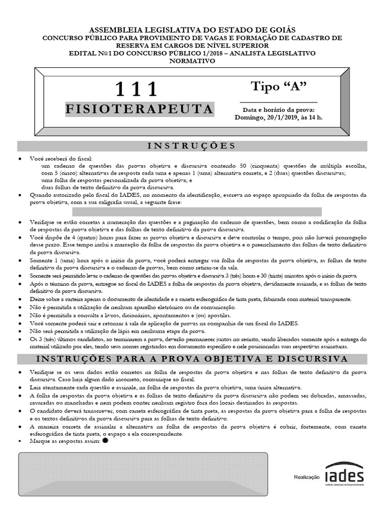 Instruções para Prova de Analista Legislativo