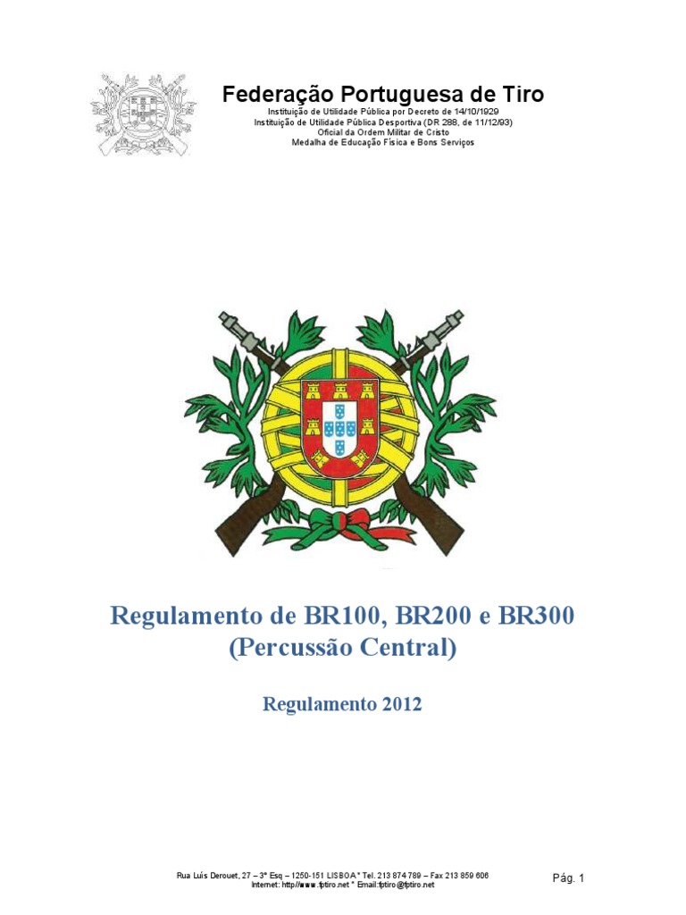 c)Antes de se realizar o sorteio das linhas devem estar colocadas todas as bancadas de tiro. d)De forma a garantir igualdade de condies entre os atiradores, ter-se- em conta no sorteio que todos os atiradores de uma mesma categoria devem realizar a prova na mesma entrada ou em entradas seguidas. [Link] restantes provas do Quadro Competitivo da FPT devem ser realizadas em conformidade com as regras do Campeonato Nacional. Artigo 11 Regras gerais da competio 1) A modalidade de BR PC praticada na posio de sentado, em bancada