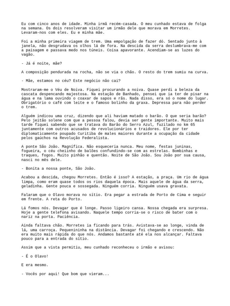 janela, não desgrudava os olhos lá de fora. Na descida da serra deslumbrava-me com