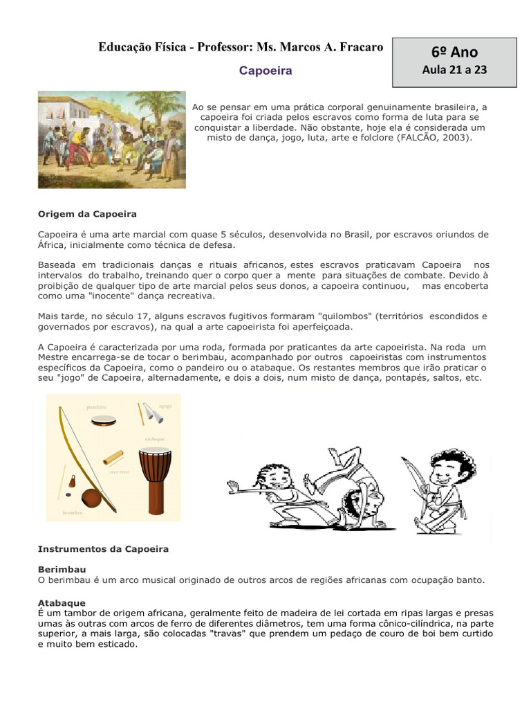 Capoeira é uma arte marcial com quase 5 séculos, desenvolvida no Brasil, por escravos oriundos de