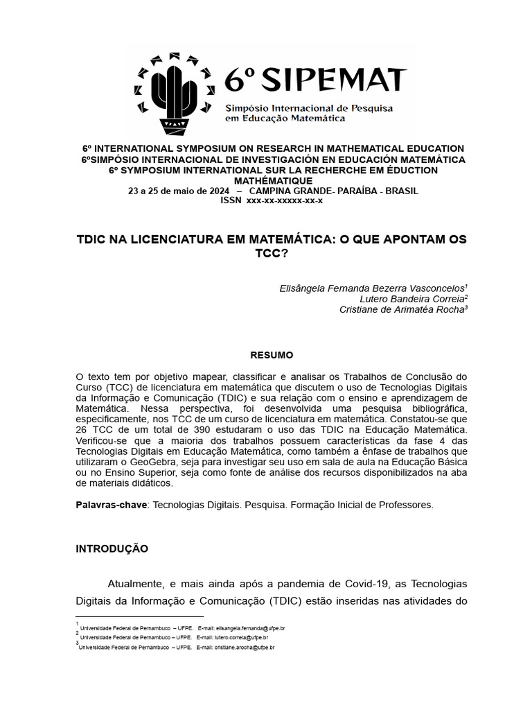 Tecnologias Digitais em Educação Matemática, como também a ênfase de trabalhos que