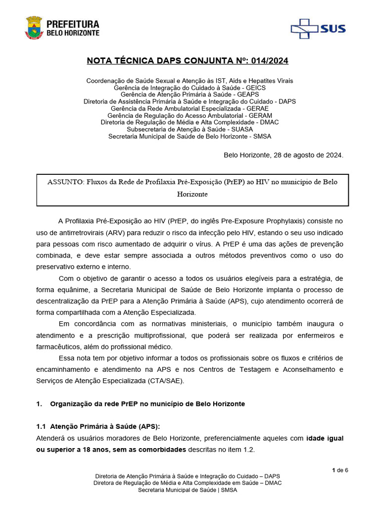 ASSUNTO: Fluxos da Rede de Profilaxia Pré-Exposição (PrEP) ao HIV no município de Belo