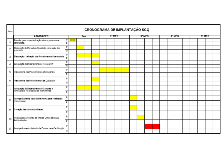 Item CRONOGRAMA DE IMPLANTAÇÃO SGQ
