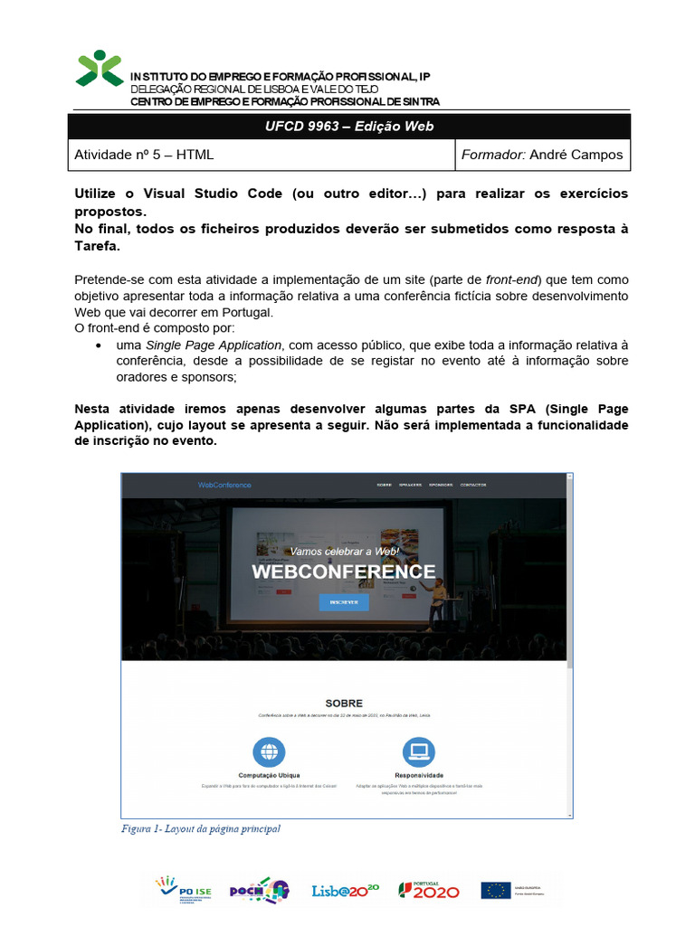 inscrição na conferência. Proceda às seguintes alterações no ficheiro index.html.