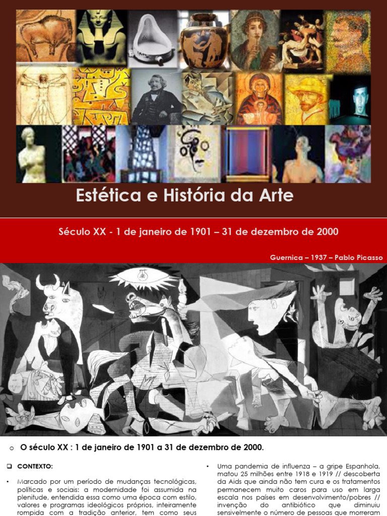Van Gogh e Gaugin. Em 1908 surgiu o cubismo, com Picasso e Braque. Em 1910 temos o