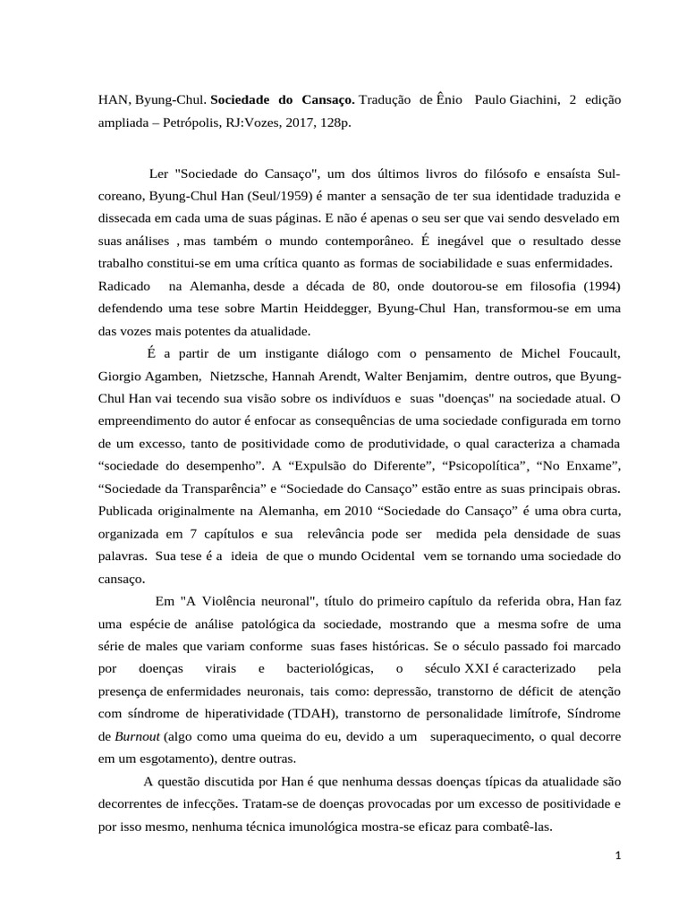 HAN, Byung-Chul. Sociedade do Cansaço.