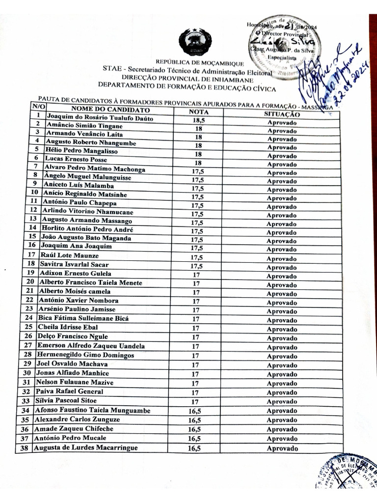 66 |Ismael Mussagy Ussene 16 ‘Aprovado
