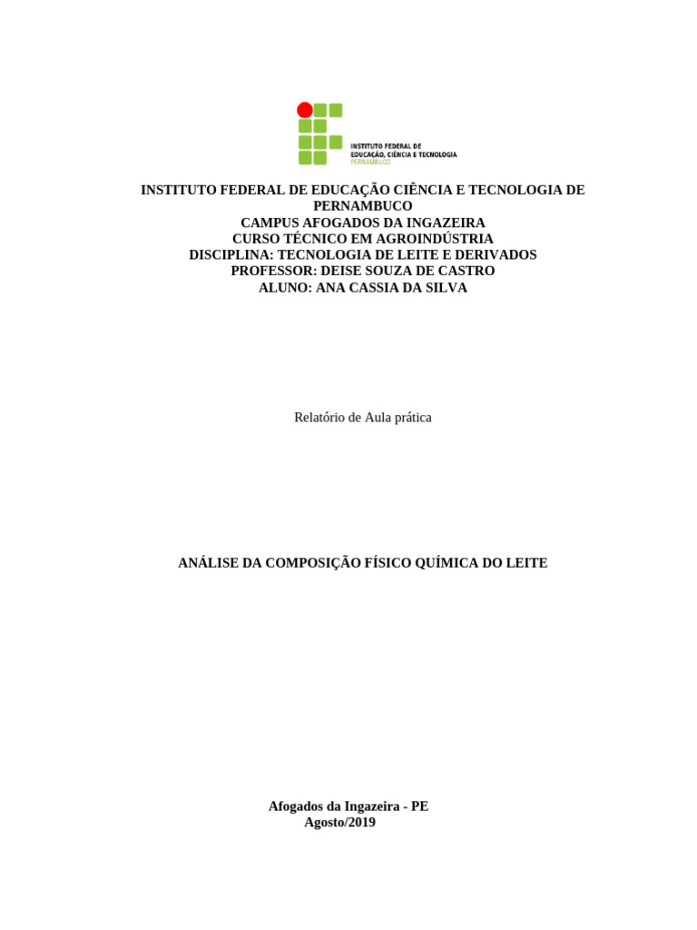 ANÁLISE DA COMPOSIÇÃO FÍSICO QUÍMICA DO LEITE