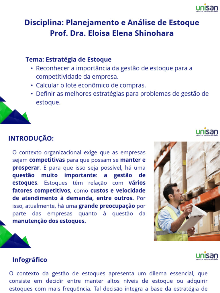 estoques com mais frequência. Tal decisão integra a base da estratégia de