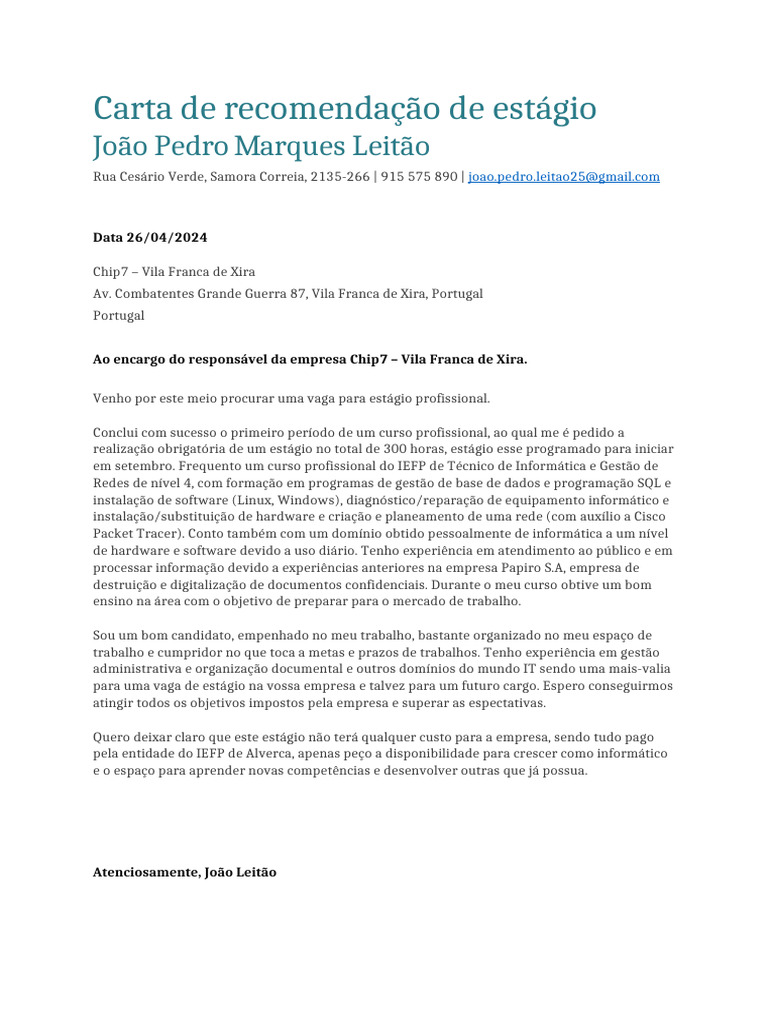 para uma vaga de estágio na vossa empresa e talvez para um futuro cargo. Espero conseguirmos
