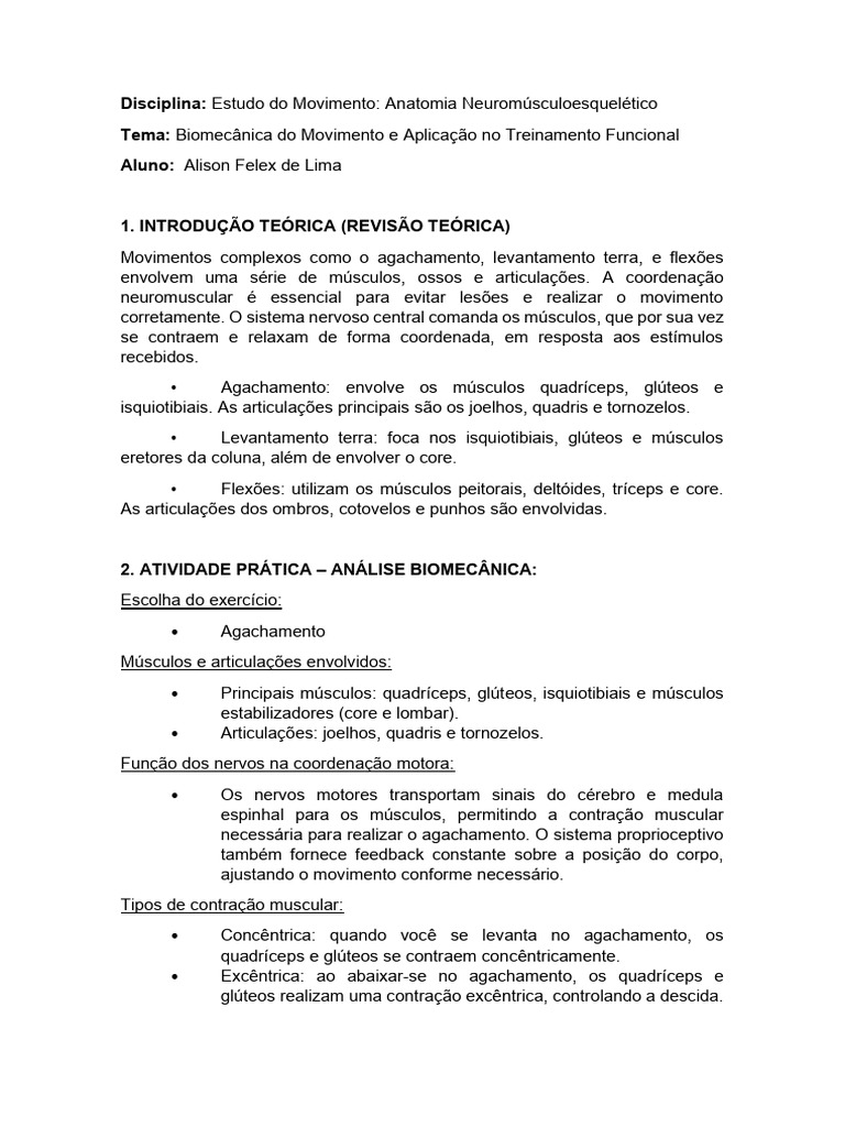 Tema: Biomecânica do Movimento e Aplicação no Treinamento Funcional