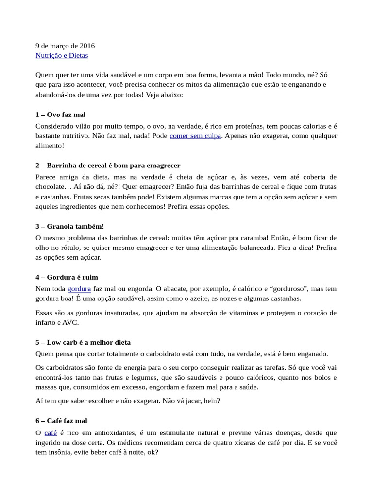 engordam, mas este mito se justifica em situações nos quais o consumo desses alimentos seja