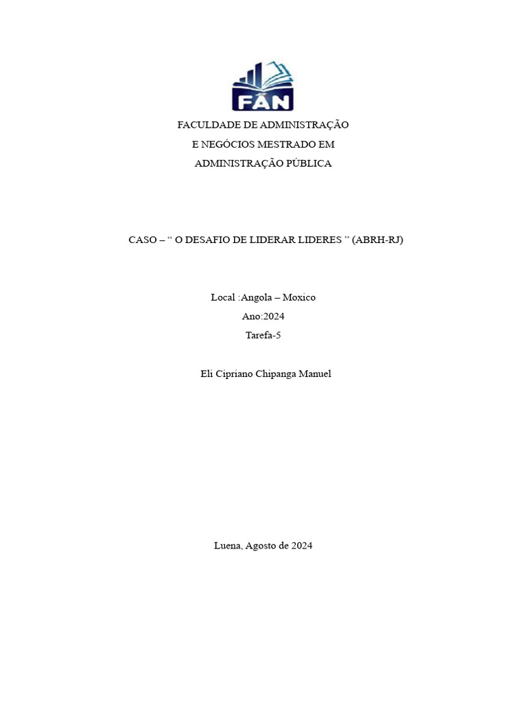 CASO – “O DESAFIO DE LIDERAR LIDERES ” (ABRH-RJ)