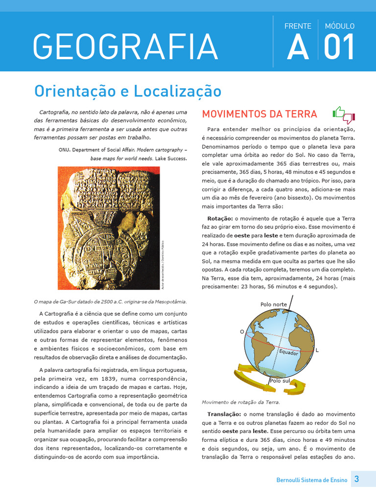 ferramentas possam ser postas em trabalho. é necessário compreender os movimentos do planeta Terra.