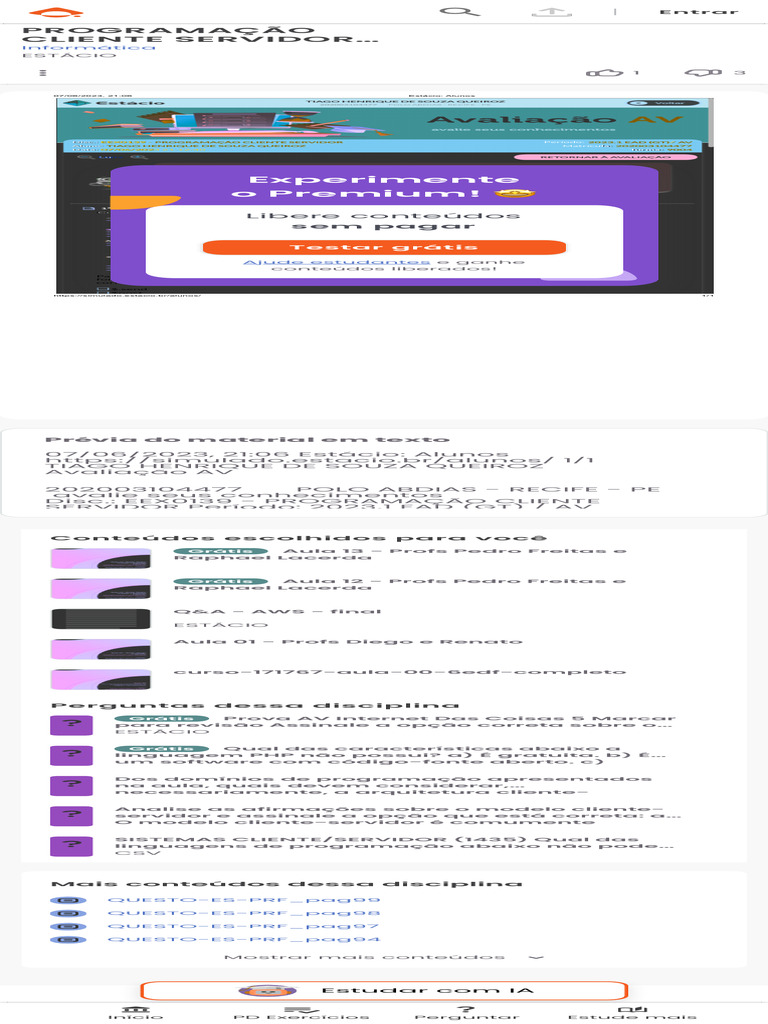07/06/2023, 21:06 Estácio: Alunos