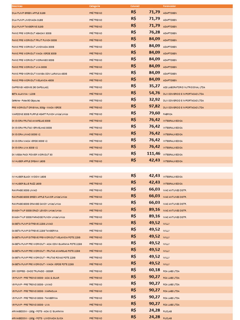 EGIDE POTE 300G SABOR ABACAXI E MANGA PRÉ TREINO R$ 85,04 SUPLEY LAB. DE ALIM. E SUPLEMENTOS NUT. LTDA