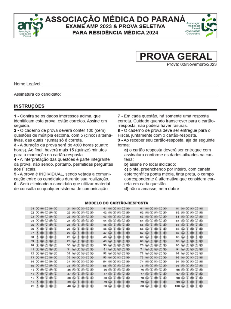 2 - O caderno de prova deverá conter 100 (cem) 8 - O caderno de prova deve ser entregue para o