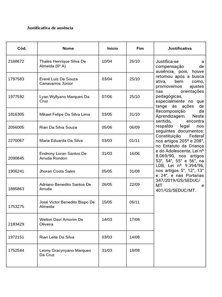 2168672 Thales Henrique Silva De 10/04 25/10 Justifica-se a