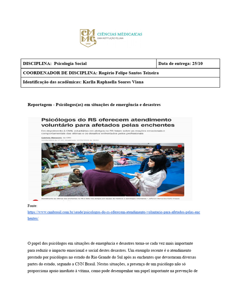 DISCIPLINA: Psicologia Social Data de entrega: 25/10