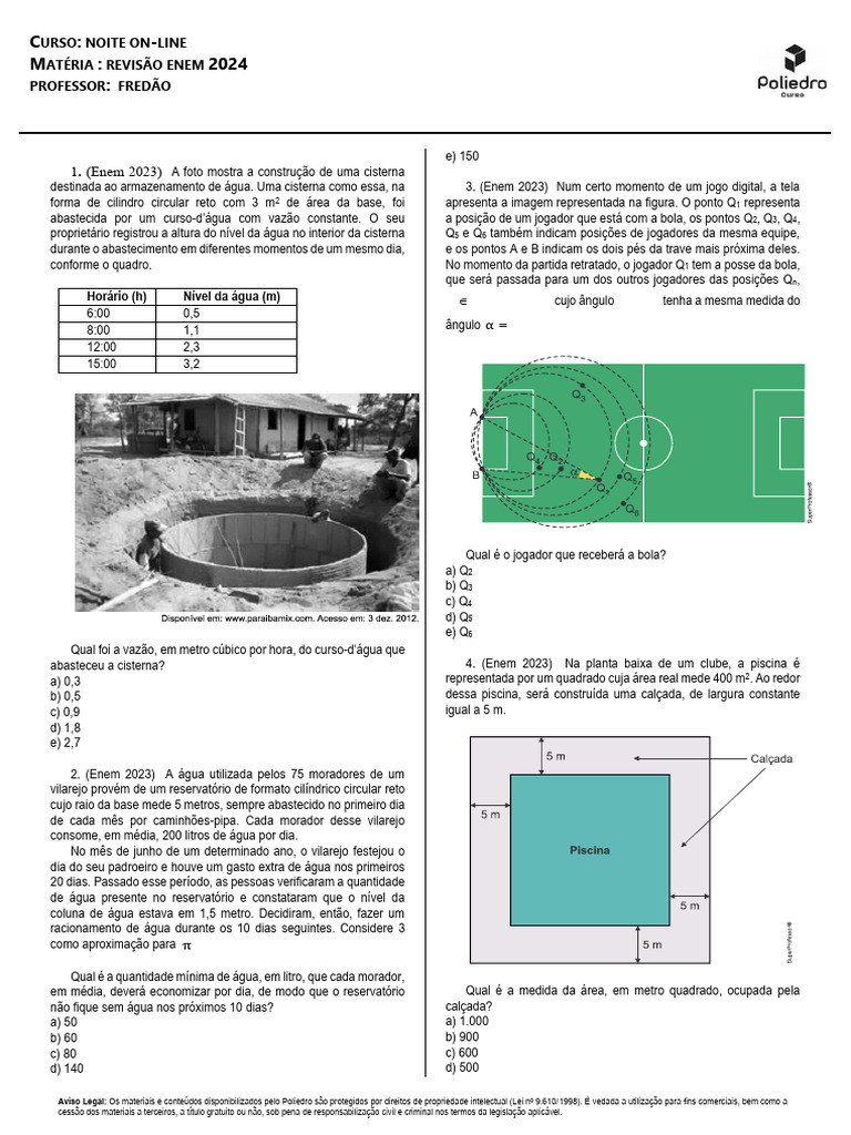 Aviso Legal: Os materiais e conteúdos disponibilizados pelo Poliedro são protegidos por direitos de propriedade intelectual (Lei nº 9.610/1998). É vedada a utilização para fins comerciais, bem 5