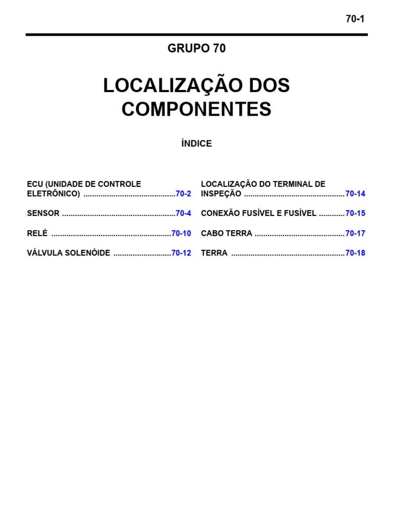 SENSOR .....................................................70-4 CONEXÃO FUSÍVEL E FUSÍVEL ............ 70-15