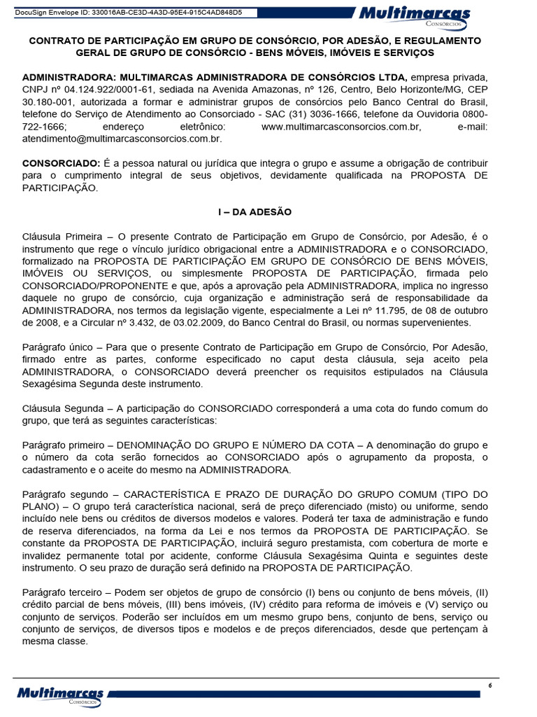 consórcio. As partes admitem a utilização da plataforma “DocuSign”, atualmente no endereço