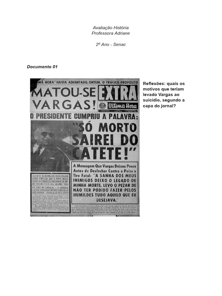b) Explique a afirmativa “o suicídio [de Vargas] foi um ato político”.