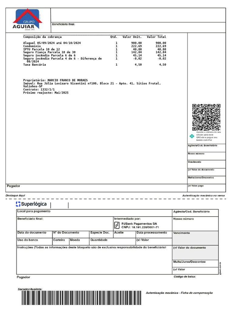 Pagável preferencialmente no banco Superlogica SCD 0001/0000515-5