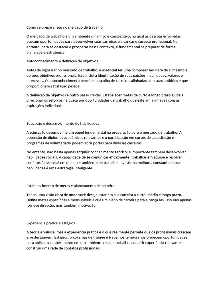 mudanças econômicas. Portanto, a preparação para uma carreira de sucesso não é um processo