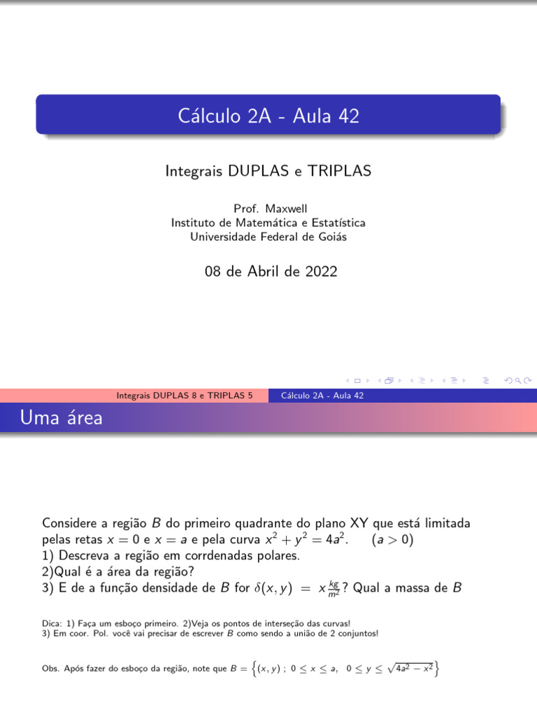 Integrais DUPLAS 8 e TRIPLAS 5 Cálculo 2A - Aula 42