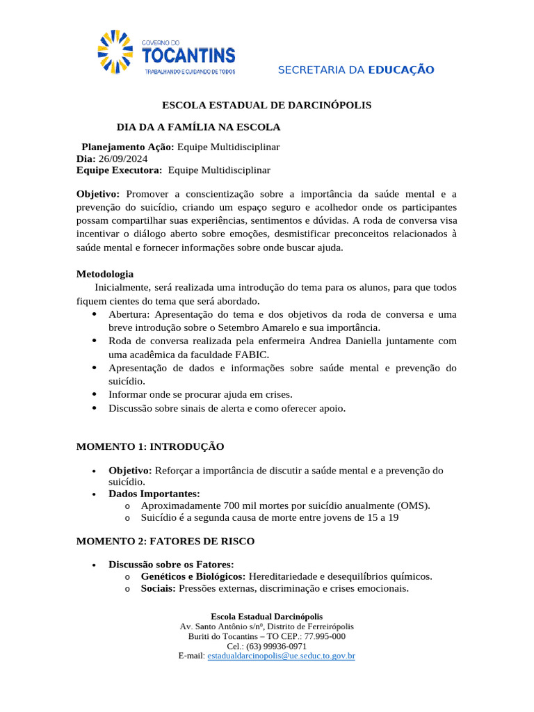 Objetivo: Reforçar a importância de discutir a saúde mental e a prevenção do
