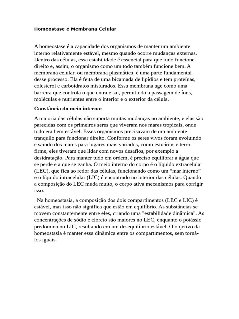 Homeostase e Membrana Celular