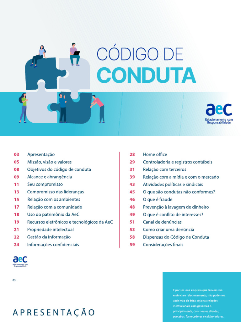 Políticas de Compliance: Regulamentos internos da AeC sobre regras de conduta específicas.