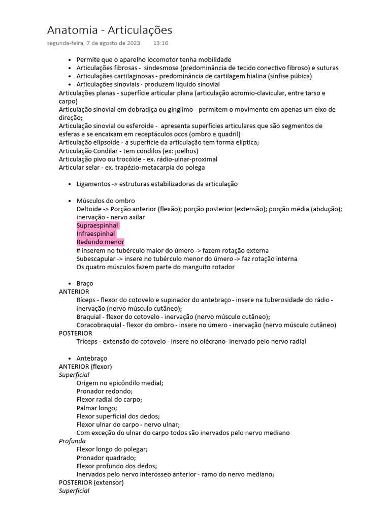 - Deltoide -> Porção anterior (flexão); porção posterior (extensão); porção média (abdução);