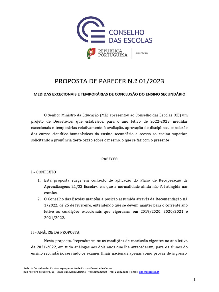 2022/2023, o Conselho das Escolas emite PARECER positivo, pois: