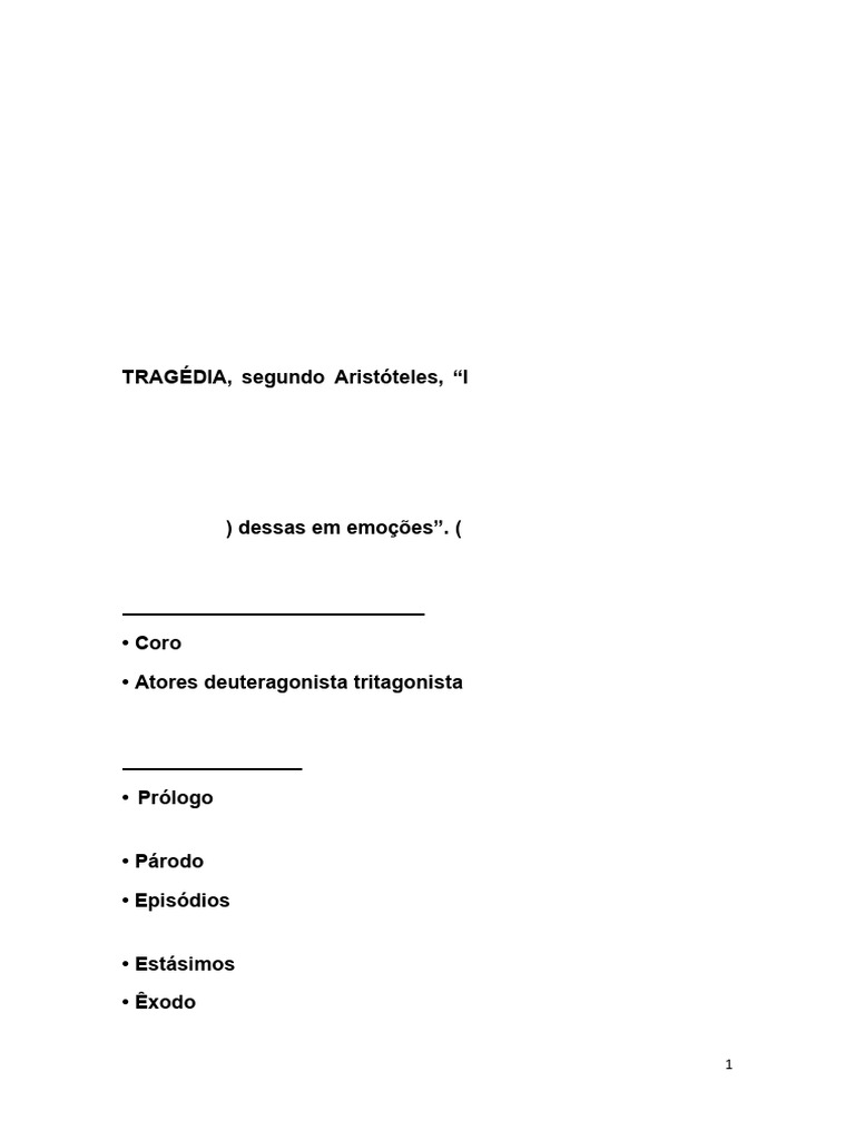 TRAGÉDIA, segundo Aristóteles, “IMITAÇÃO de uma ação de
