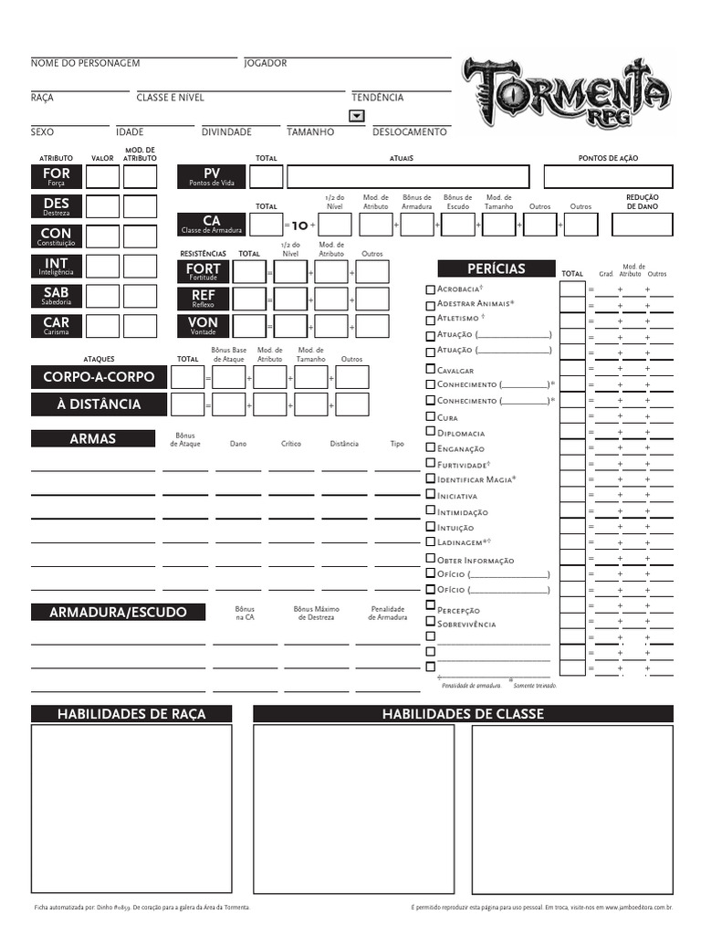 Ficha automatizada por: Dinho #0859. De coração para a galera da Área da Tormenta. É permitido reproduzir esta página para uso pessoal. Em troca, visite-nos em [Link].